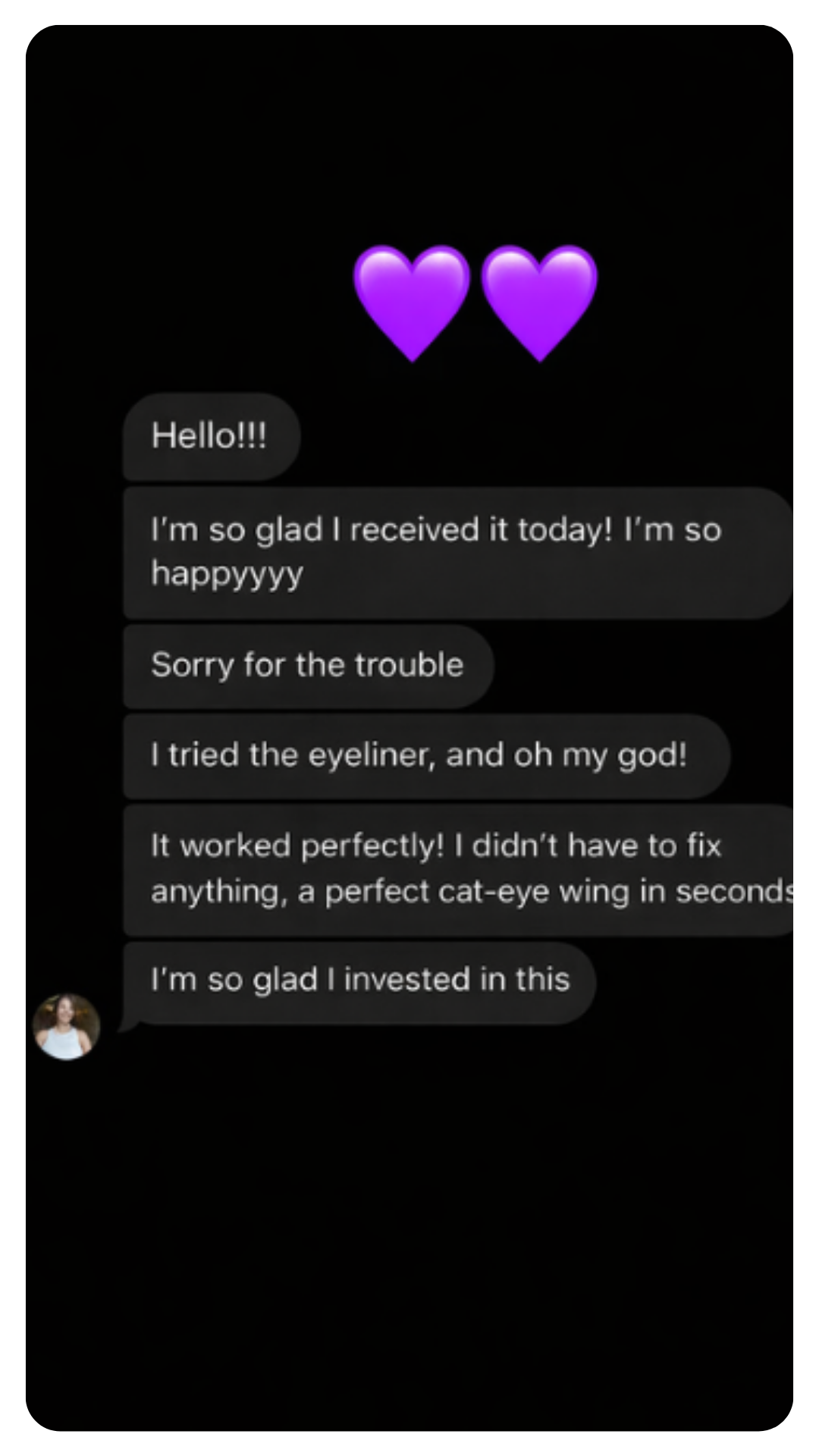 We're confident PeelPerfect™ will transform your eyeliner routine. That's why we're offering a 30-Day Money-Back Guarantee. If you're not completely satisfied, reach out and we'll be happy to help! 💜